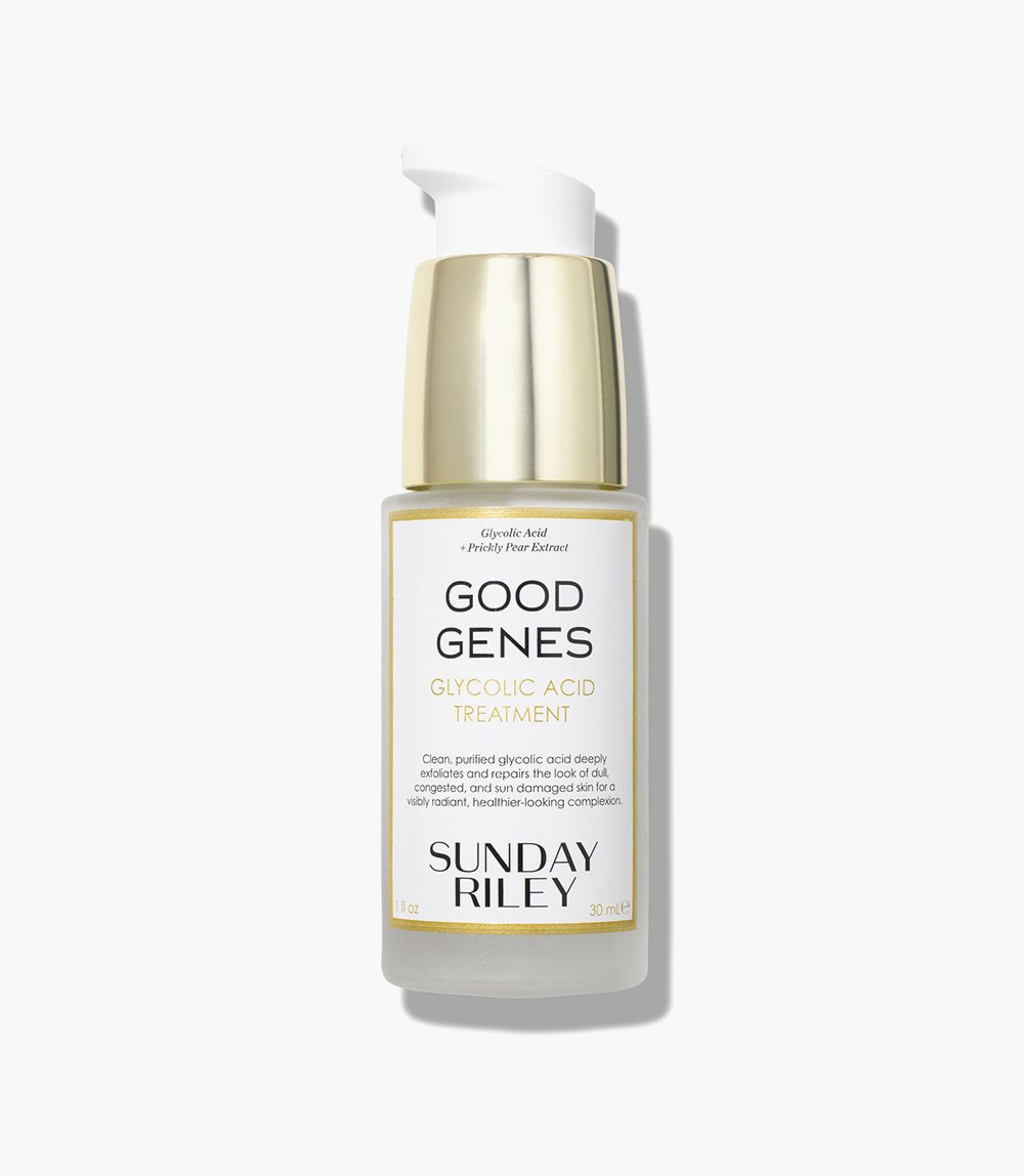 The Sunday Riley Good Genes Glycolic Acid Treatment can be applied as a serum morning and evening each day. Its gentle exfoliation soothes and boosts the complexion when used consistently.